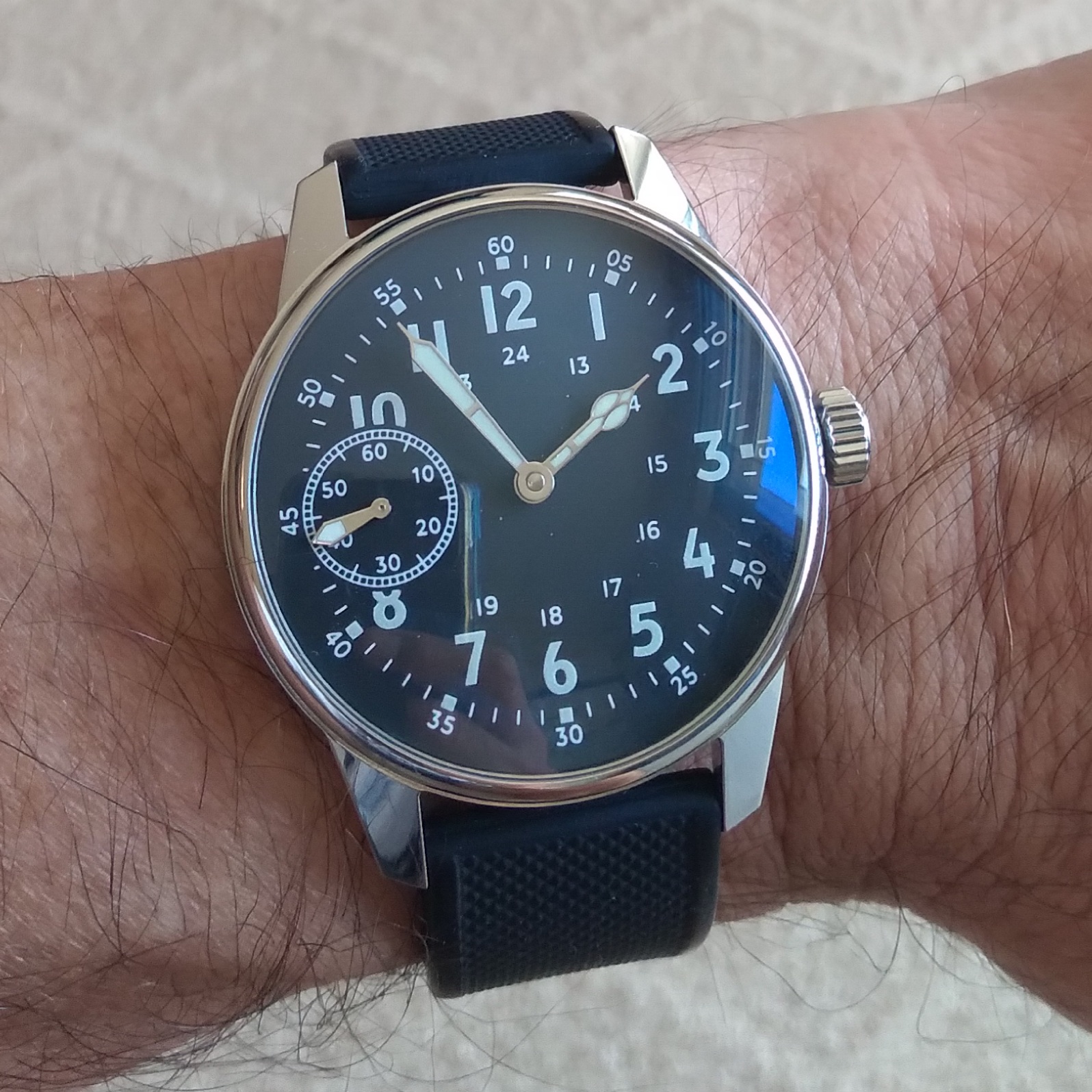 • Swiss ETA 6497-1 Mechanical Hand-wind Movement with 17 jewels and 46-hour power reserve