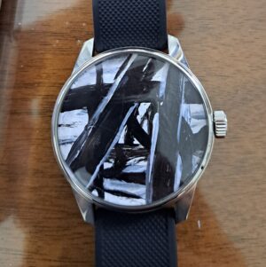 Each Minnaar watch includes two, miniature, original Minnaar paintings – one on the dial, and one visible through the special see-through case back.