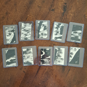 7″ x 10.5″ India ink on paper fractionalized/cut into 10 Trading Cards sold individually.