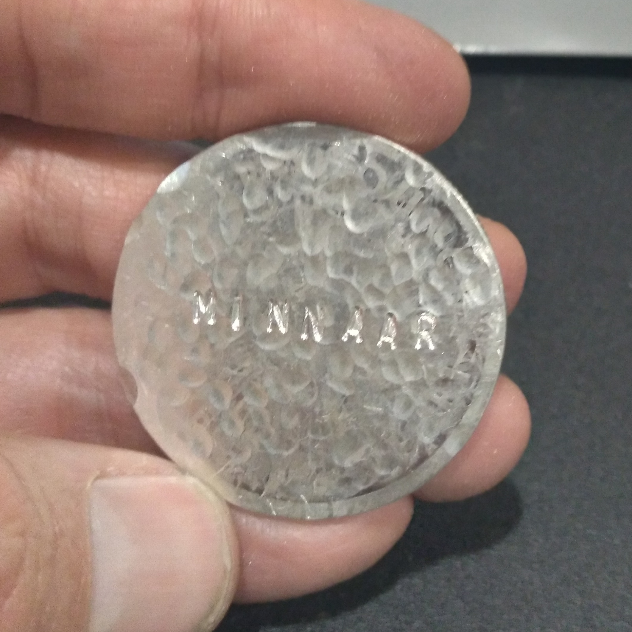 Home00450 Private Collection Sculpture Silver 00450 December 30, 2021January 20, 2026 “One Silver Minnaar” 4 cm diameter 1 Troy ounce .999 silver sculpture Click here to learn about Minnaar Money